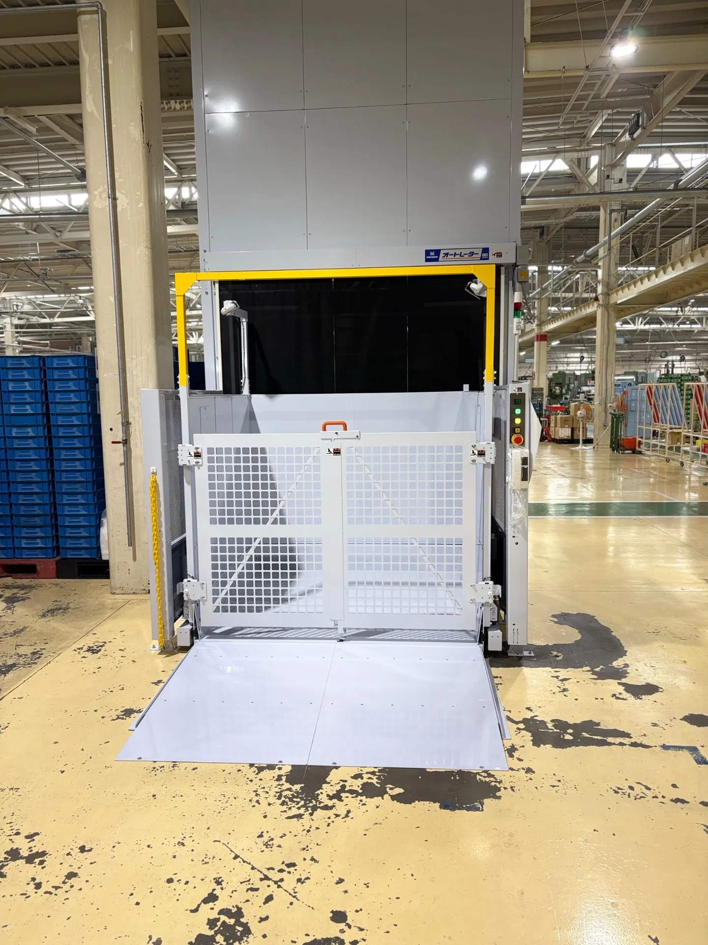 エレベーターのようにカゴを昇降させて荷物を運ぶ、垂直搬送機です。